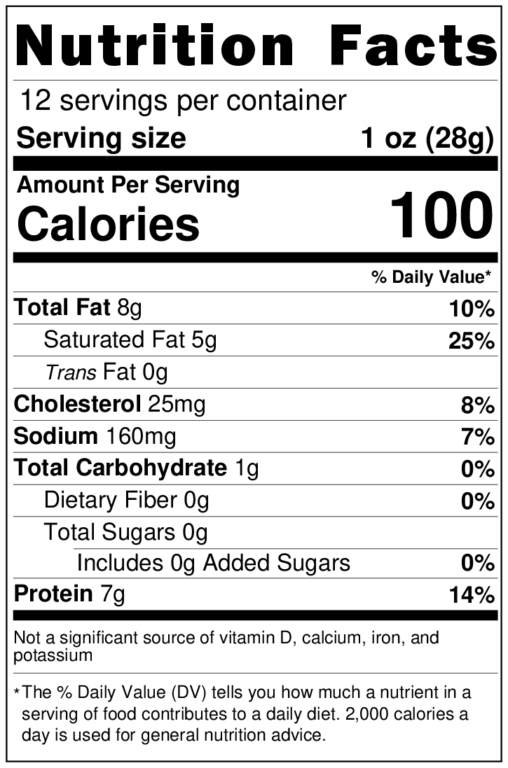 Pasteurized whole milk, cheese culture, salt, enzymes