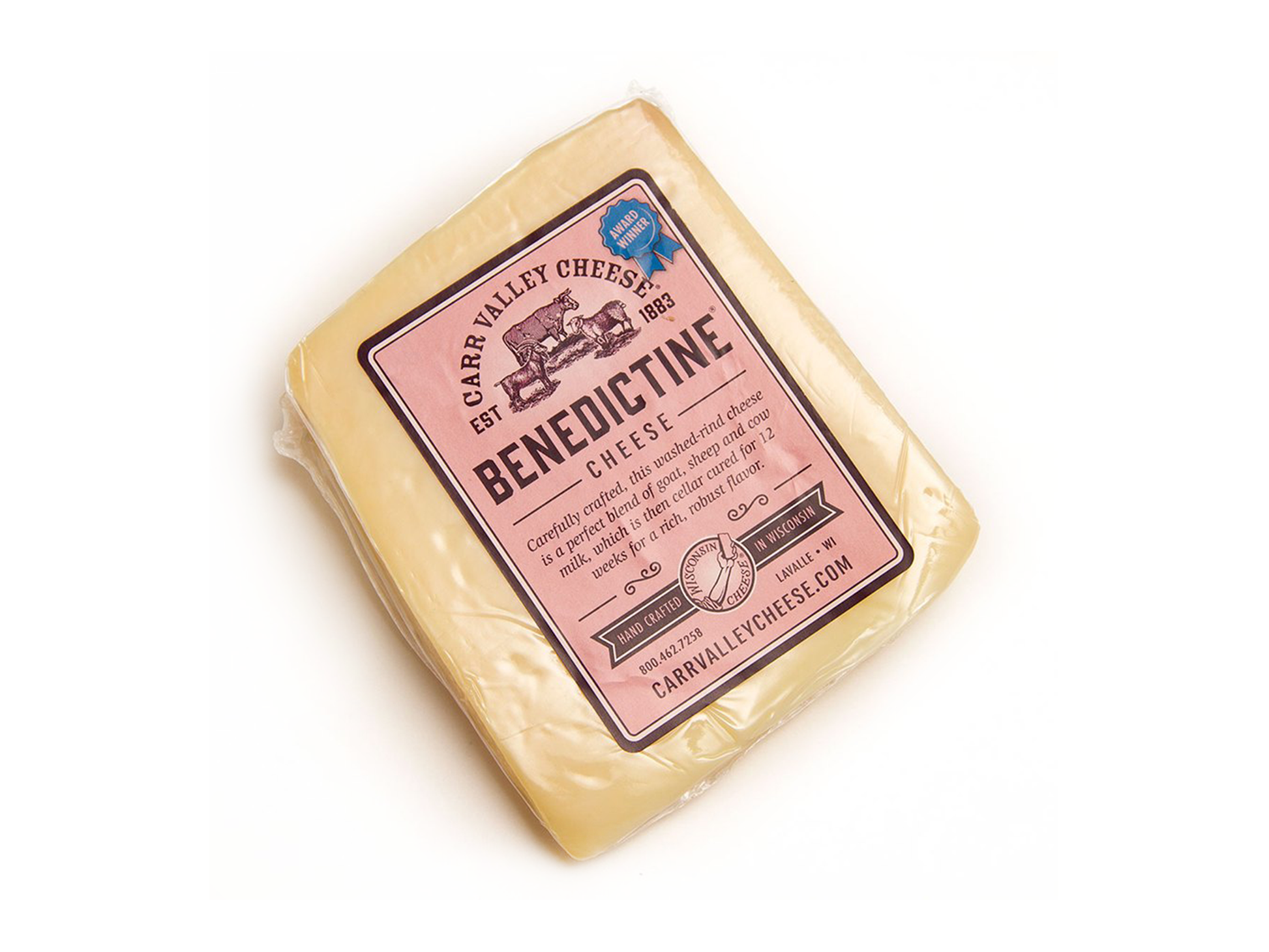 Benedictine is a washed rind cheese made with fresh sheep, goat and cow milk. It is cellar cured and hand rubbed for 12 weeks before packaging. The flavor explodes with intensity.