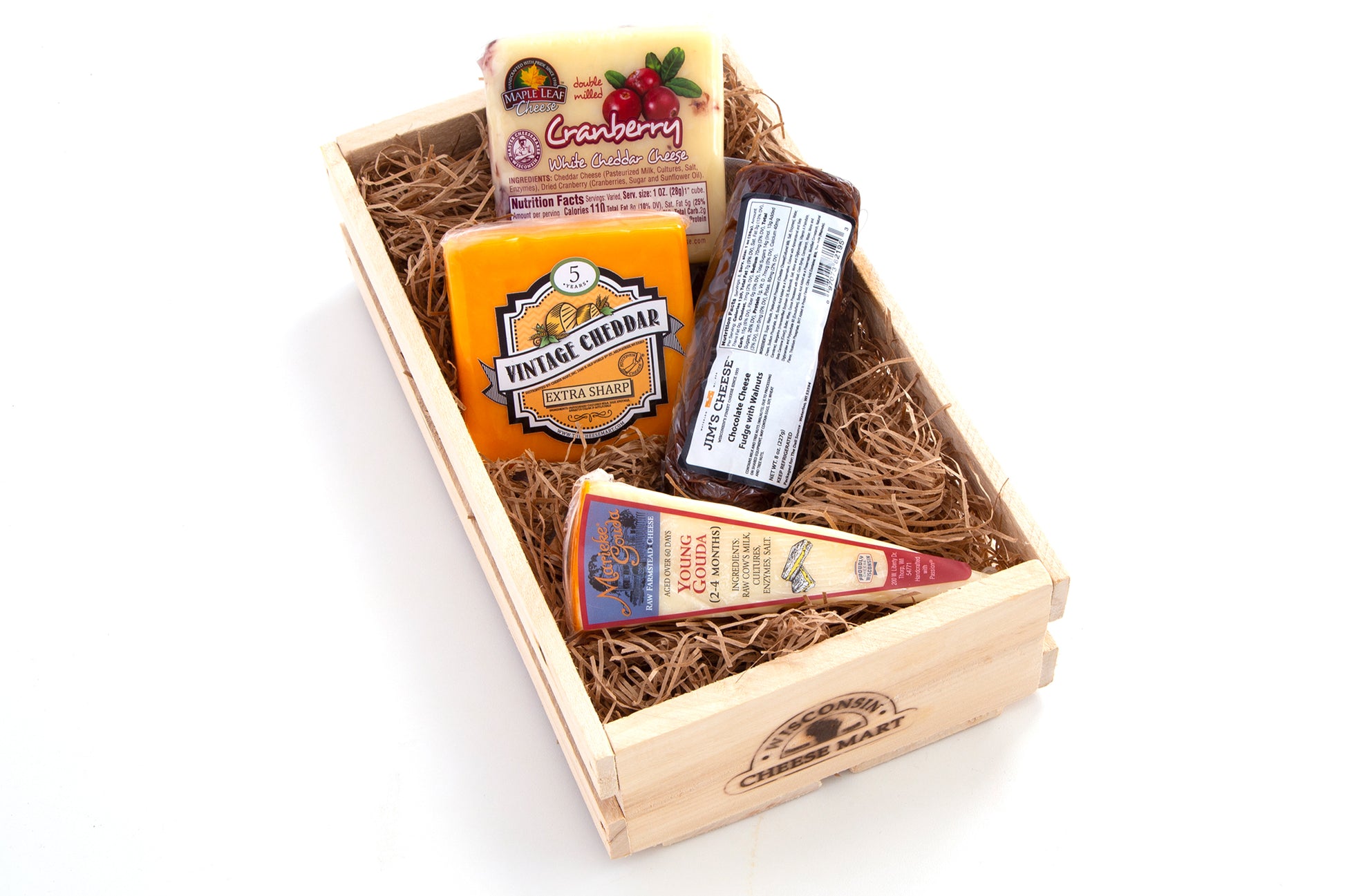 All cheese is neatly packaged in a Wisconsin hand-made, branded wooden cheese box.