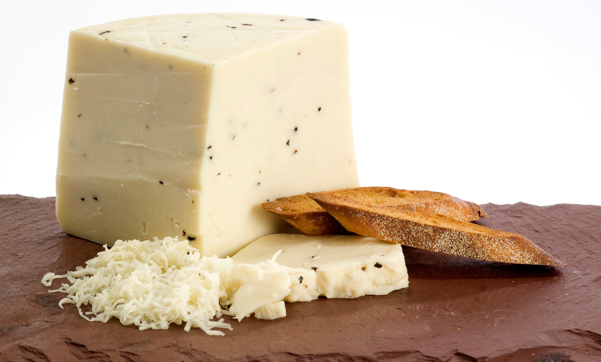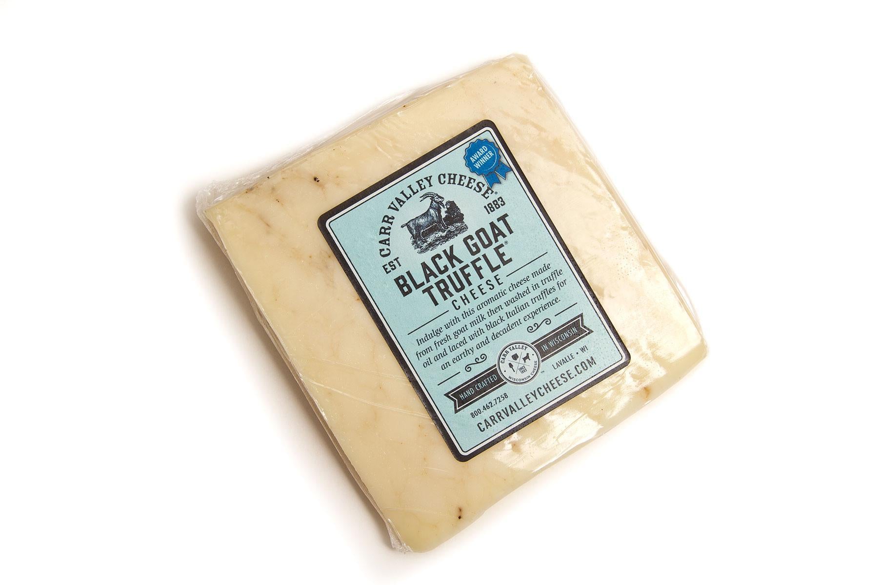 This cheese is made from fresh goat milk and has a pungent, earthy aroma. The flavor from black truffles blends deliciously with the sweetness of a fresh goat cheese. The texture is firm; it shreds well and is great on salads, burgers and vegetables.