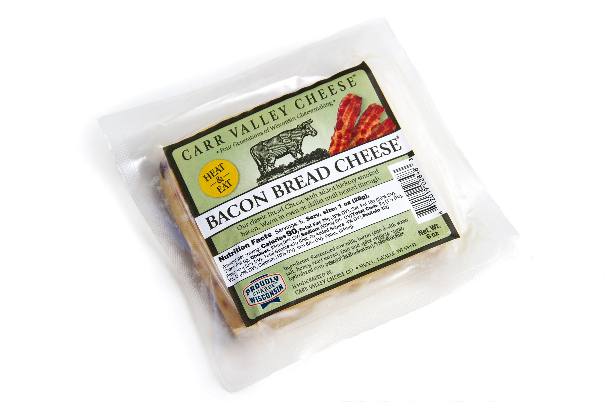 Inspired by the Finnish cheese Juustoleipa, or cheese bread. This 'squeaky' cheese has a very buttery flavor, and the heat from baking caramelizes the sugars on the outside of the cheese to form a tasty crust similar to brown bread. With the addition of high quality hickory smoked bacon, this savory bread cheese makes a great appetizer or snack! Before serving, pop it in your oven, saute in a skillet, or microwave until it glistens. Serve with your favorite dipping sauce - try with fruit chutney for a sweet and savory combo your taste buds will love!