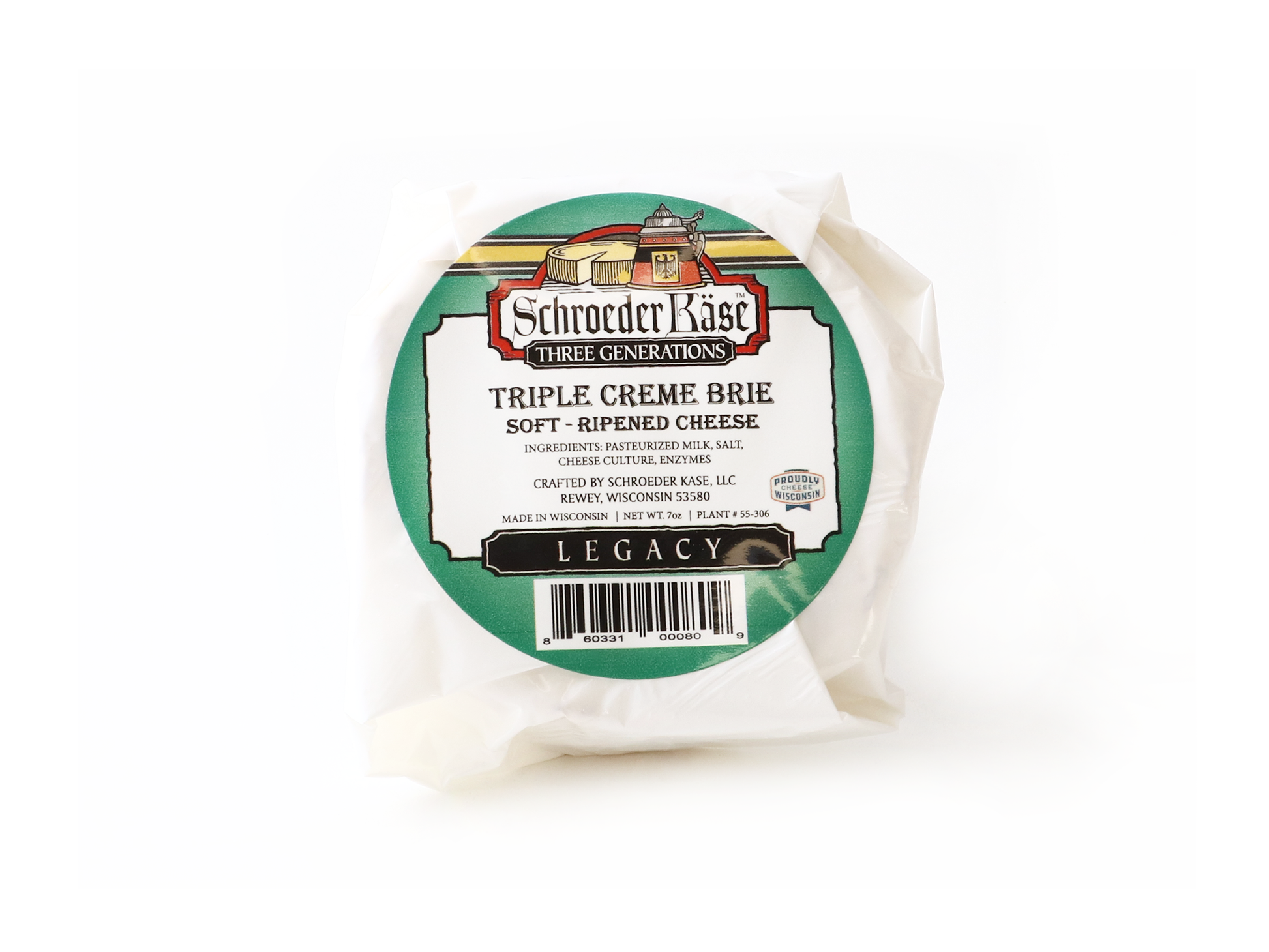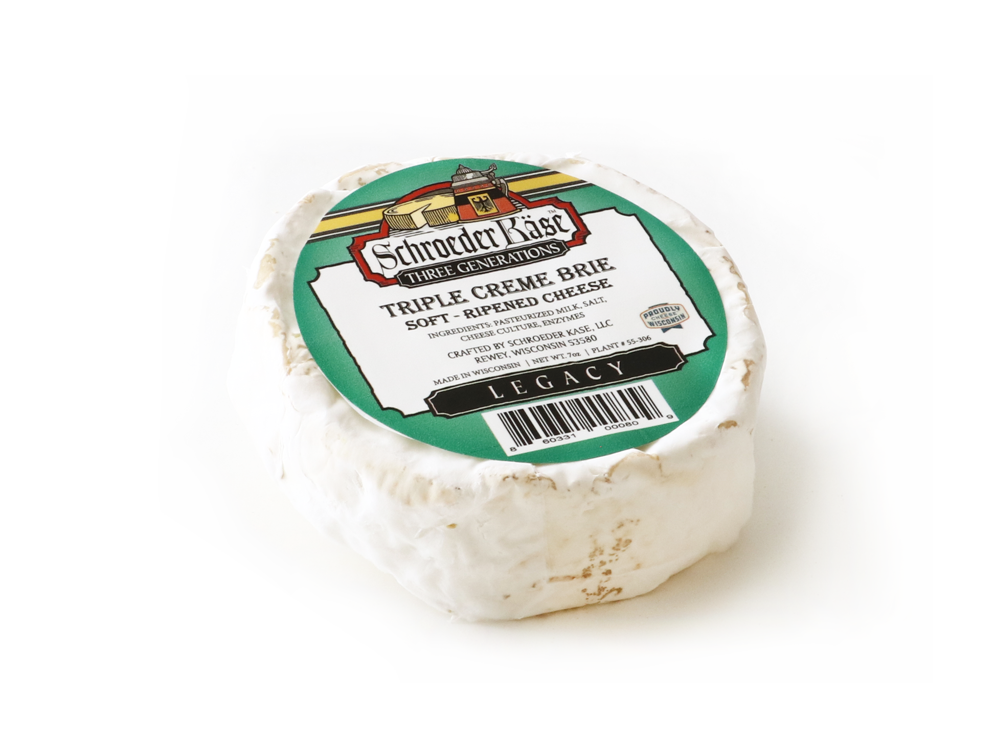 Brie is a soft cow’s-milk cheese named after the French region of the same name, from where the cheese originated. There are many types of Brie cheese available, varying in milk type, butterfat content, and aging. Schroeder Kase's Triple Cream Brie is a soft ripened, un-pressed cheese made from cow’s milk. This Brie is unique as they add extra cream before the production process, giving it a creamy mouthfeel. It is rich and decadent, with a snowy white, bloomy rind.