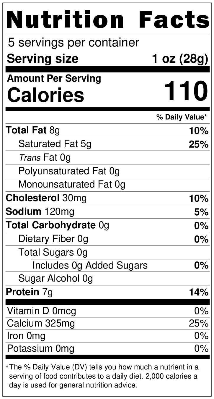 Pasteurized cultured goat and sheep milk, salt, enzymes, grape vine ash, calcium chloride