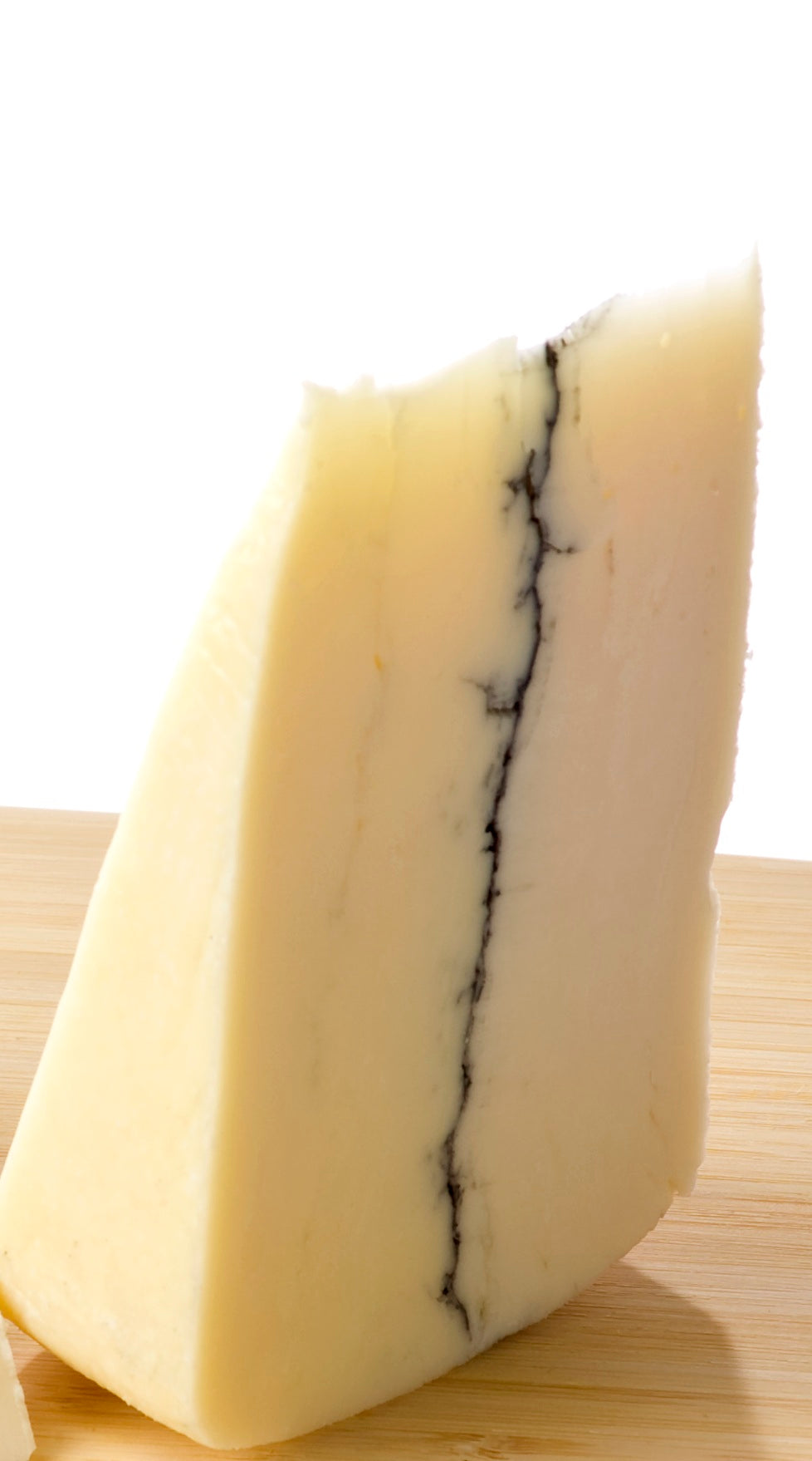 Sid’s whimsically delicious take on the famous French cheese, Morbier. Our version features a layer of sheep milk cheese and a layer of goat milk cheese separated by a layer of grape vine ash and pressed together. The flavor is both delicate and rustic. Taste each layer separately and then together for three different flavor profiles in one great cheese!