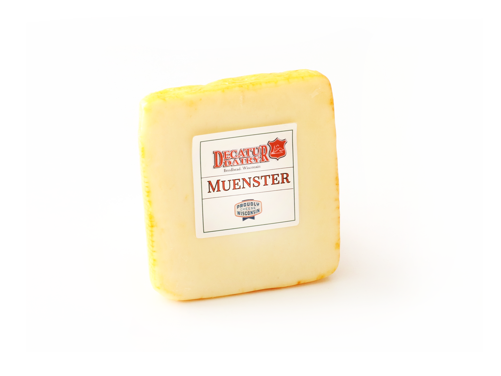 Muenster cheese is lower in fat per serving than many other popular store-bought cheeses such as cheddar, mozzarella and Monterey Jack. Muenster is pale in color and smooth in texture with an orange rind. The cheese is made from cow's milk. The rind's orange color is from annatto, a sweet and nutty seasoning used to add flavor and color to cheeses such as Cheddar, Colby, Red Leicester, and Mimolette. Muenster usually has a very mild flavor and smooth, soft texture. In some cases, when properly aged, it can develop a strong flavor with a pungent aroma. This cheese is commonly served as an appetizer. Because it melts well, it is also often used in dishes such as grilled cheese sandwiches, tuna melts, quesadillas, cheeseburgers, macaroni and cheese, and pizza. Muenster cheese is often served with beer as the flavors complement each other well.