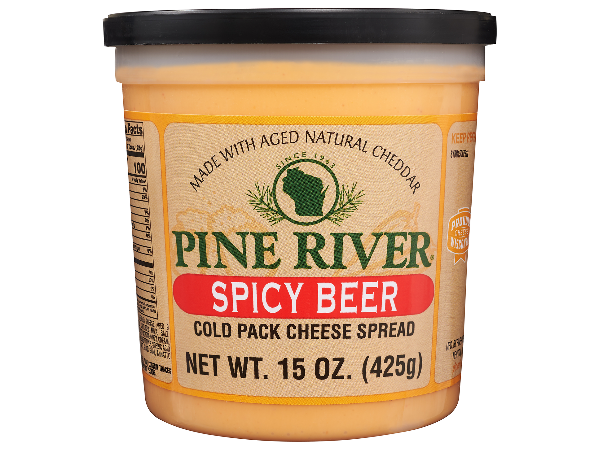 A blend of natural Wisconsin Grade A aged Cheddar, cayenne pepper, garlic, and beer enjoyed on crackers, pretzels, crusty breads, or in a recipe for beer cheese soup!