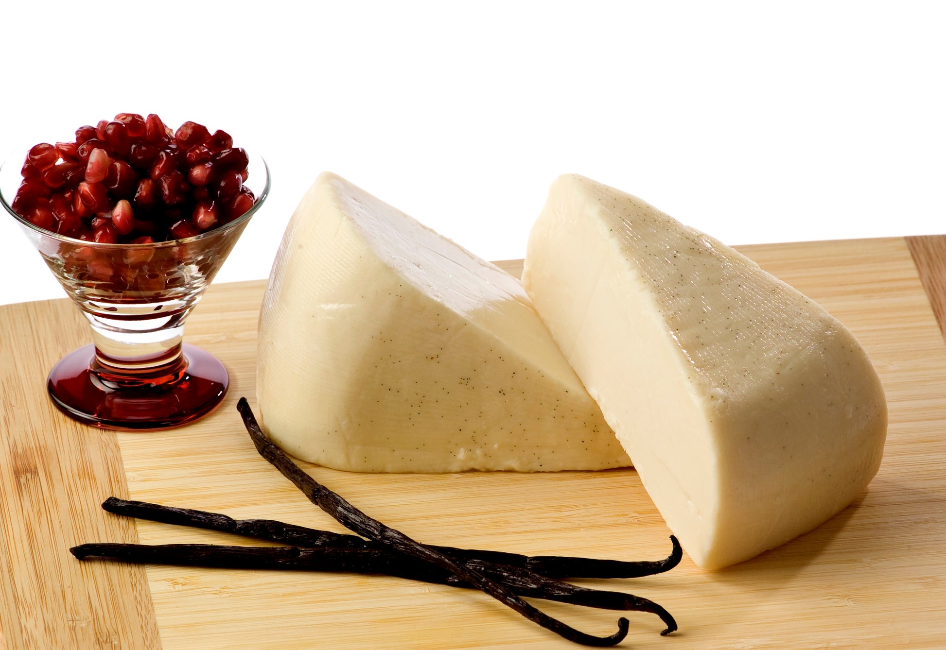 Carr Valley’s Sweet Vanilla Cardona cheese is a delicious, unique cheese. The Sweet Vanilla Cardona cheese is made from goat’s milk, with hints of caramel, coconut, and nutmeg. The cheese has a mix of vanilla sugar on the rind, and vanilla bean throughout the cheese, giving it its decadent, sweet vanilla flavor. This cheese comes in a five ounce package, and pairs wonderfully with dark chocolate or your favorite fruit jam! Produced by Carr Valley Cheese of La Valle, Wisconsin.